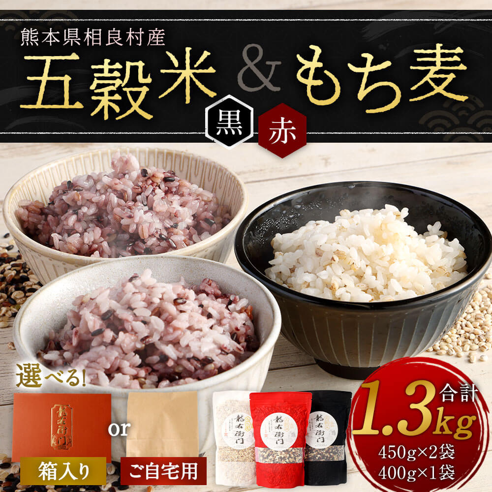 - 【ふるさと納税】【先行受付】<選べる> 五穀米(黒・赤)&もち麦セット 450g×2袋 400g×1袋 3袋セット 合計1300g 【箱入り/ご自宅用】 【2025年11月上旬より発送開始】とよはら農園 雑穀 紫黒米 うるち米 餅きび 赤米 熊本県産 国産 送料無料