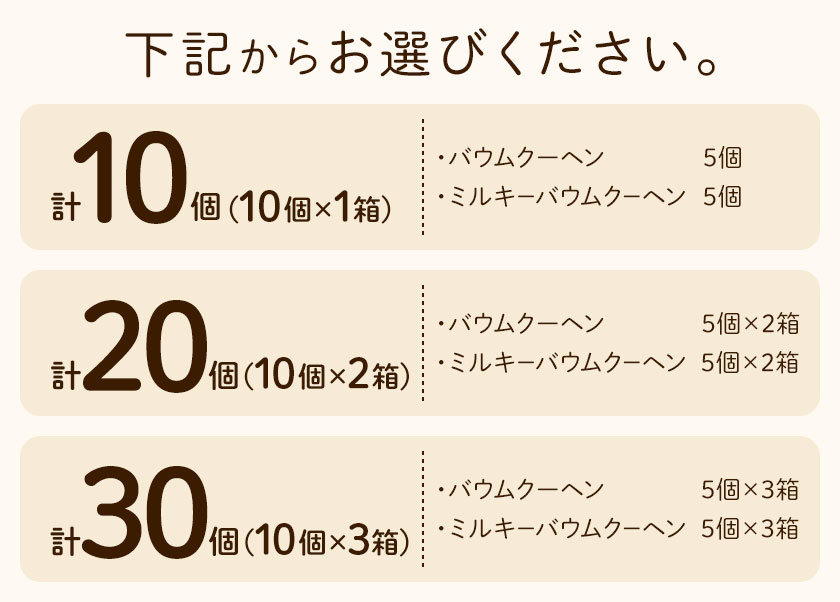 - 【ふるさと納税】お菓子 焼き菓子 不二家 バウムクーヘン ミルキーバウムクーヘン 食べ比べ 選べる 10個 20個 30個 (株)不二家《30日以内に出荷予定(土日祝除く)》栃木県 野木町 fujiya ふじや ペコちゃん 菓子 おやつ おかし 個包装 贈り物 ギフト バウム バーム