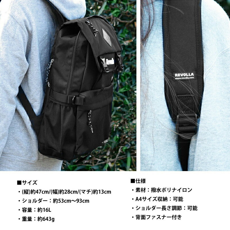 - 【ふるさと納税】 Revolla リュック バッグ 軽量 ナイロン フラップポケット スクエア 男女兼用 16リットル バックパック デイパック 通勤 通学 アウトドア 旅行 ビジネス カジュアル 防水 A4サイズ収納 おしゃれ シンプル 機能的 実用的 ユニセックス 牧之原市 静岡県