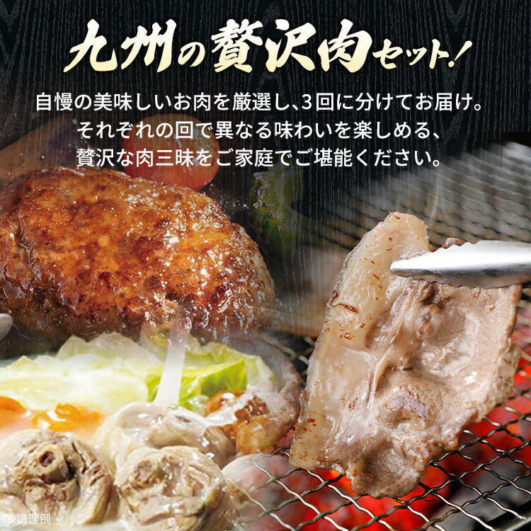 - 【ふるさと納税】定期便 肉 全3回 みやこ自慢のふるさと便・肉 毎月 定期便 猪肉 ハンバーグ はかた地どり ジビエ BBQ 焼肉 地鶏 キャンプ 黒毛和牛 惣菜 晩御飯 晩ご飯 宮崎牛 食べ比べ 福岡県 福岡 九州 グルメ お取り寄せ