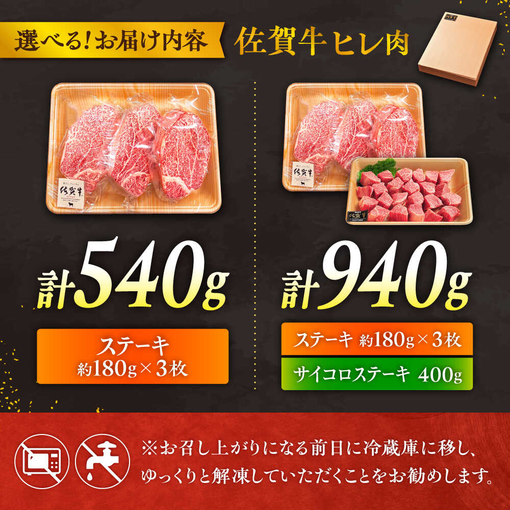 【ふるさと納税】佐賀牛 赤身 希少部位 ヒレ ( ステーキ 3枚 or ステーキ+ サイコロステーキ400g セット ) | 牛肉 焼肉 和牛 ブランド牛 |吉野ヶ里町/やま田商店[FCH019/FCH025]