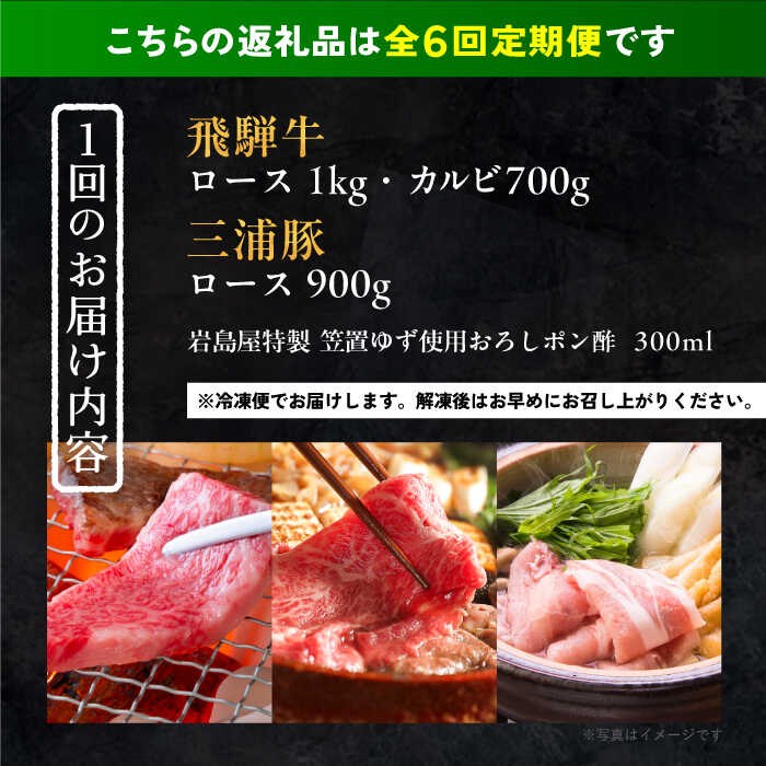【ふるさと納税】【6回定期便】 牛肉 飛騨牛ロース1kg カルビ700g 三浦豚ロース900g 豪華3点セット 各種類1パック しゃぶしゃぶ・焼肉 和牛 国産 霜降り 肉 にく 牛肉 国産 和牛 霜降り 産地直送 贈答用 ギフト ブランド牛 岐阜県産 人気 お取り寄せ /恵那市/岩島屋[AUAJ031]