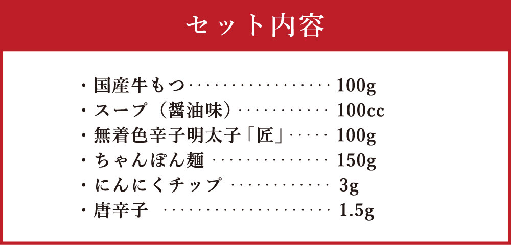 - 【ふるさと納税】博多 明太もつ鍋 1人前 醤油味 ホルモン鍋 牛モツ鍋 モツ鍋 鍋 牛もつ 100g スープ ちゃんぽん麺 無着色辛子明太子 めんたいこ たらこ 一本子 ホルモン 小腸 しょうゆ 九州 国産 福岡 冷凍 送料無料