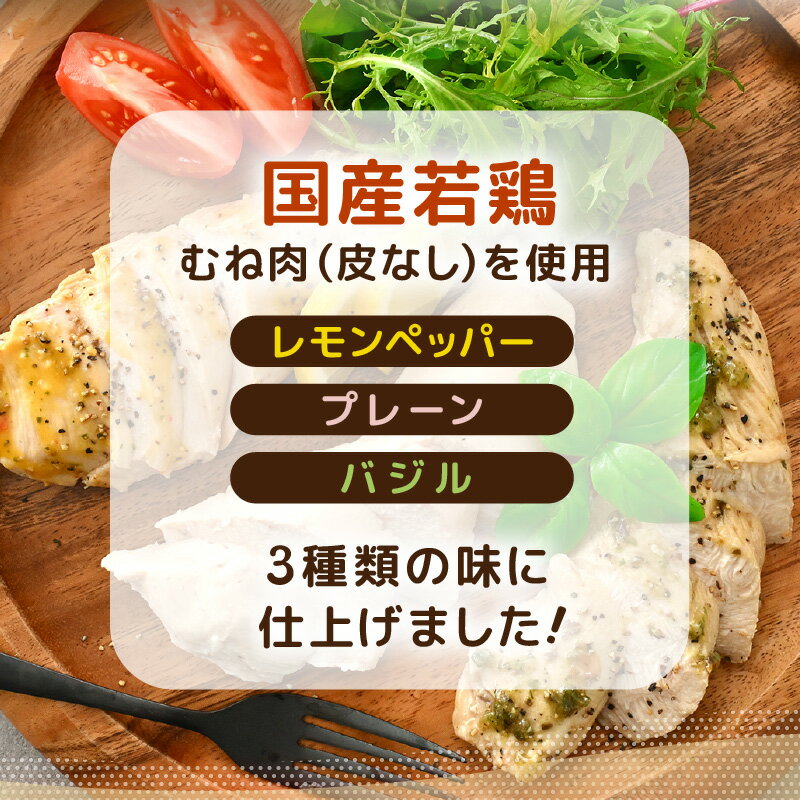 - 【ふるさと納税】国産若鶏 むね肉 ヘルシーサラダチキン 3種セット 100g × 各3パック(合計900g) プレーン味 / バジル味 / レモンペッパー味 【国産 若鳥 鶏肉 鶏 鳥肉 ムネ肉 サラダ チキン 小分け パック おかず 低カロリー ヘルシー ダイエット 加工品 冷凍】
