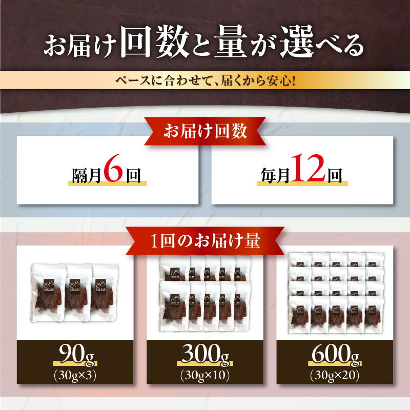 - 【ふるさと納税】<選べる容量と回数> 6回 or 12回 定期便 Cao Cao エゾ鹿肉 100% スライス ジャーキー 90g ~ 600g ペットフード ペット 鹿肉 犬のおやつ 愛犬 おやつ ご褒美 栄養補給 エゾ鹿肉100% WORLDWIDEStyle 北海道 苫小牧市 おすすめ ランキング プレゼント ギフト