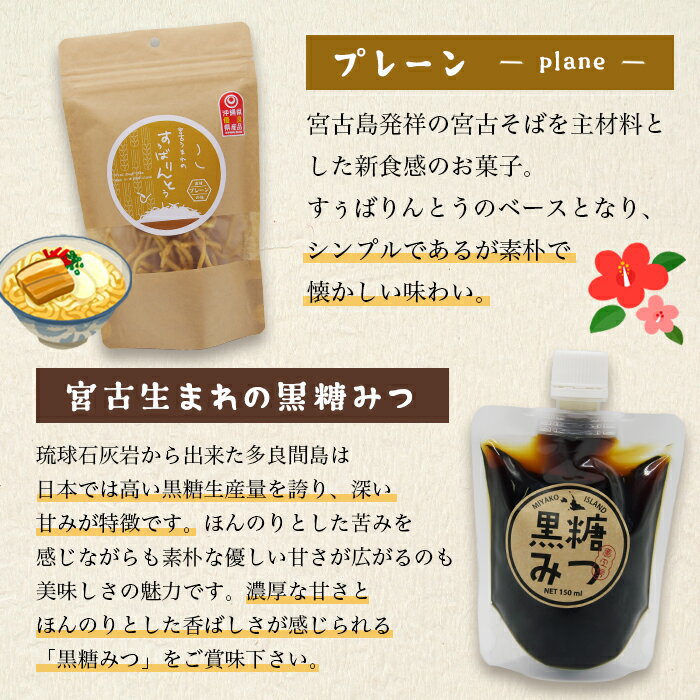 - 【ふるさと納税】宮古うまれのすぅばりんとう3袋(プレーン、あおさ、黒糖)と宮古うまれの黒糖みつ1パック(JU02)
