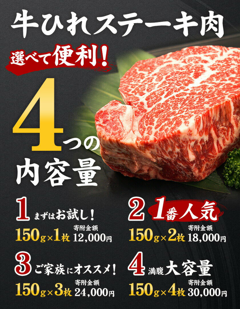 - 【ふるさと納税】くまもと黒毛和牛 ヒレステーキ 150g 〜 600g 牛肉 冷凍 《90日以内に出荷予定(土日祝除く)》 くまもと黒毛和牛 黒毛和牛 冷凍庫 個別 取分け 小分け 個包装 ステーキ肉 にも ヒレステーキ 選べる 内容量