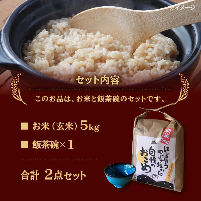 - 【ふるさと納税】【令和7年産】 玄米 コシヒカリ 特別栽培米 (5kg) + 【美濃焼】 青輝貫入 飯茶碗 多治見市 / 山松加藤松治郎商店 [TEU036]