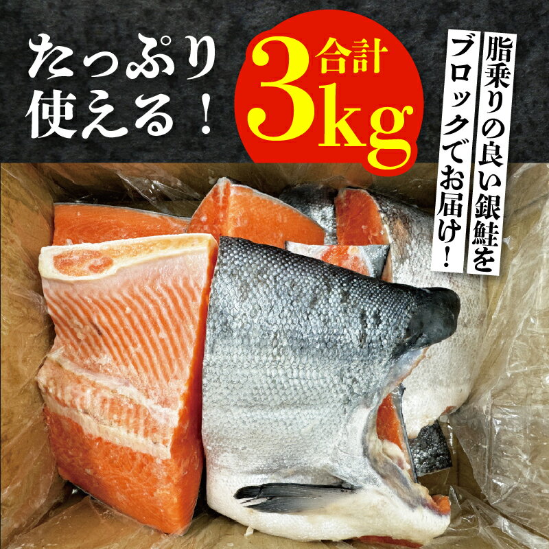 - 【ふるさと納税】 《 訳あり 》 銀鮭 ブロック 3kg 【 鮭 シャケ さけ サーモン 無塩 海鮮 魚 魚介 打ち身 色飛び お弁当 おかず 規格外 不揃い 冷凍 新堀 新潟県 燕市 燕三条 】 [10002931]