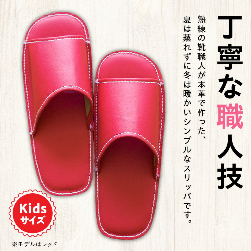 【ふるさと納税】靴職人 手作り 本革 スリッパ キッズサイズ 20.5cm ~ 21.5cm 選べる カラー ブラック ブラウン レッド ホワイト キャメル ツートン シンプル ルームシューズ 部屋履き 室内 雑貨 日用品 革 キッズ 子供 愛知県 碧南市 送料無料