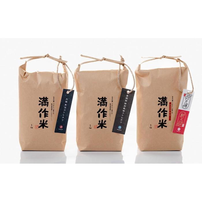 - 【ふるさと納税】【 食べ比べセット 3種 各1kg 】 ( 満作米BLコシヒカリ ・ 従来コシヒカリ ・ 新之助 ) 令和7年産 新米 魚沼産 | お米 おこめ こめ コメ 白米 精米 ご飯 新潟県 津南町