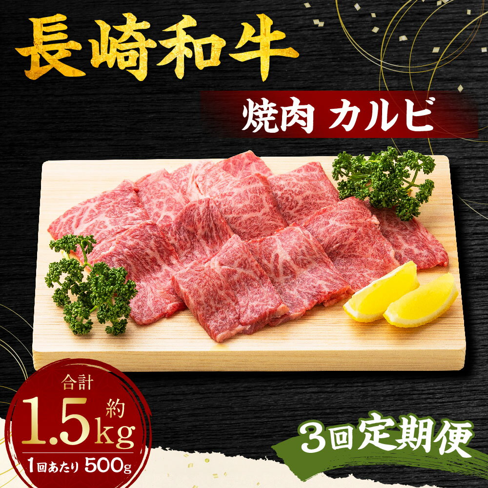 - 【ふるさと納税】【全3回定期便】長崎和牛 焼肉 カルビ 約500g(2~3人前) 和牛 牛肉 お肉 BBQ バーベキュー ギフト 贈答 お中元 お歳暮 冷凍 長崎県産 国産 九州 長崎県 長崎市 送料無料