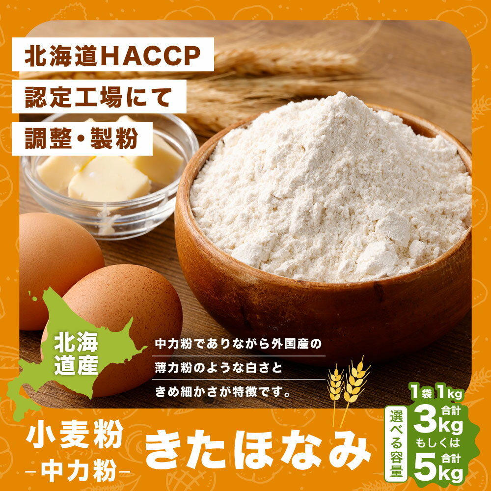 - 【ふるさと納税】北海道産 きたほなみ【中力粉】 合計 3kg または 5kg 1kg×3袋 1kg×5袋 国産 小麦粉 中力小麦粉 お菓子作り うどん作り パン作り 製菓 製麺 製パン 白 きめ細やか 北海道 深川市 送料無料