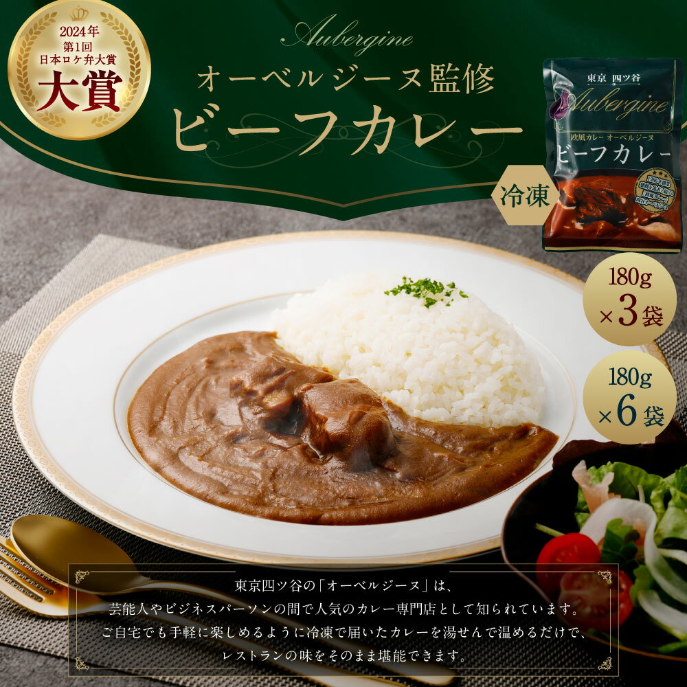 【ふるさと納税】[選べる容量] オーベルジーヌ監修 冷凍 ビーフカレー (180g×3袋 又は 6袋) / カレー 欧風カレー 牛肉 香味野菜 厳選スパイス ケータリング ロケ弁 楽屋弁当 弁当 ご自宅用 お手軽 お取り寄せ 小樽市 北海道 送料無料