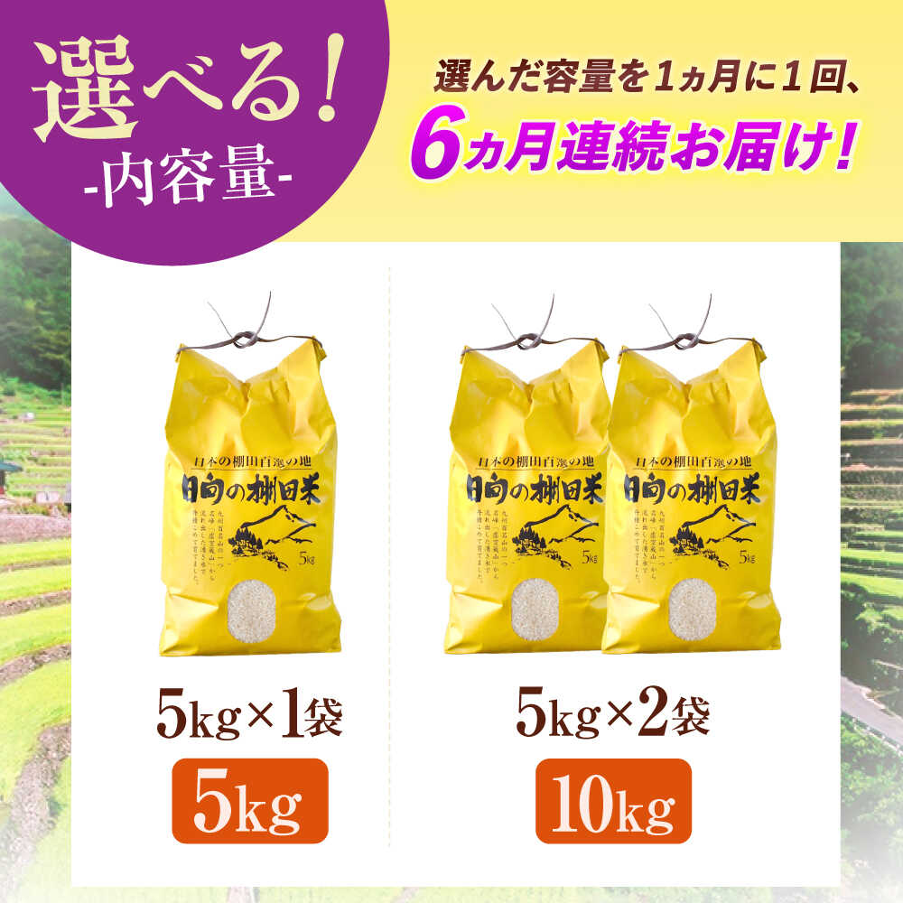 【ふるさと納税】<容量選べる!>【6回定期便】虚空蔵の清流水で育った棚田米『ひなた米』 5kg・10kg【木場中山間管理組合】[OCM046]