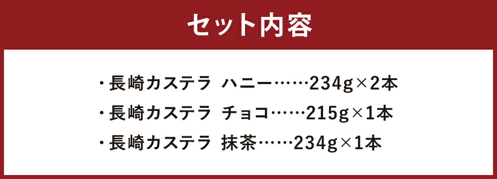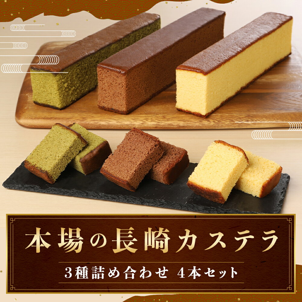【ふるさと納税】【7営業日以内発送】 伝統に育まれた本場の長崎カステラ 人気の3種詰め合わせ! ハニー 2本 / チョコ 1本 / 抹茶 1本 計4本セット | 菓秀苑 森長 3種類 カステラ チョコレート 宇治抹茶 蜂蜜 菓子 お菓子 おやつ 和菓子 スイーツ デザート 長崎市 送料無料