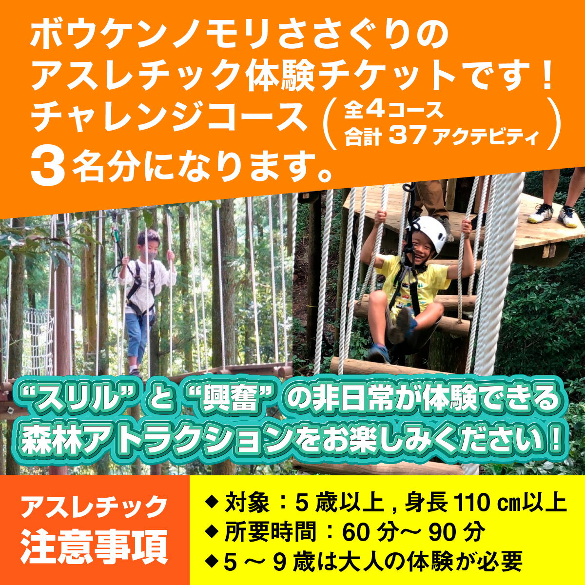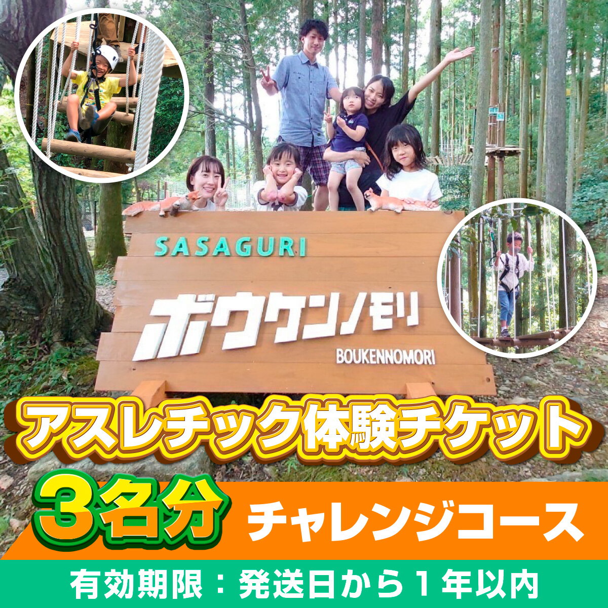【ふるさと納税】 ボウケンノモリささぐり アスレチック体験チケット 3名分(チャレンジコース)体験 アクティビティ アスレチック スポーツ アウトドア レジャー 運動 体験チケット チケット 金券 クーポン 利用券 家族旅行 施設利用券 旅行 観光 国内旅行 送料無料 zz002