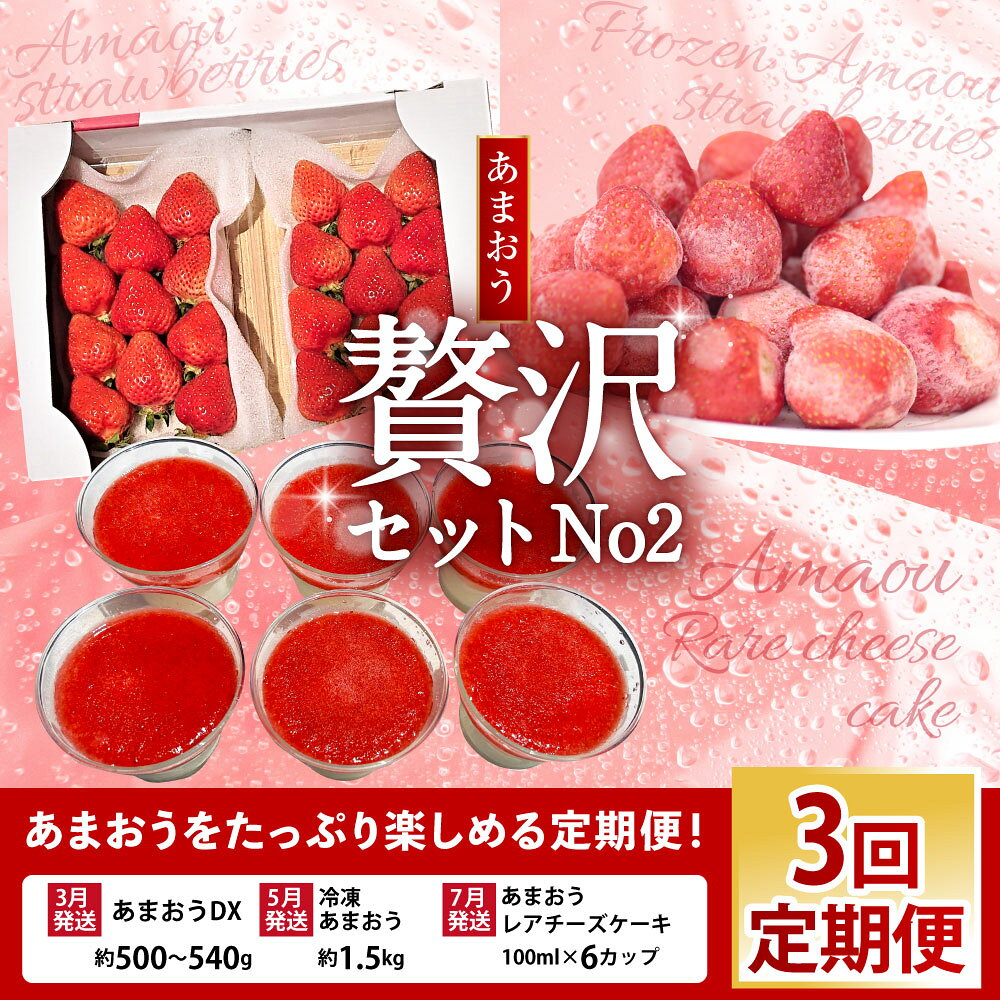 【ふるさと納税】【予約受付・3回定期便】 あまおう贅沢セット No2 合計3種 あまおうDX 約250~270g×2パック 冷凍あまおう 約1.5kg プレミアムあまおうレアチーズケーキ 100ml×6カップ いちご 冷凍 送料無料 【2026年3月上旬~7月下旬発送予定】