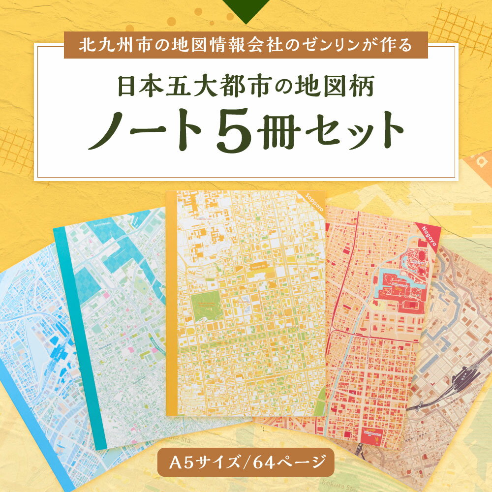 【ふるさと納税】地図柄 ノート 5冊セット (日本五大都市) 5部 A5サイズ 64ページ 文房具 罫線 札幌 東京 名古屋 大阪 福岡 地図 マップ おしゃれ 模様 日本 国内 福岡県北九州市 【ZENRIN】