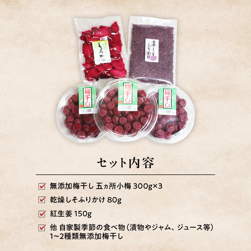- 【ふるさと納税】40年作り続けてきた無添加梅干しと季節の食べ物セット 数量限定 梅干 うめぼし しょっぱい すっぱい 紫蘇 シソ しそ 紅生姜 紅しょうが 紅ショウガ 塩漬け 漬物 お漬物 ジャム ジュース 三重県 多気町 TH‐01