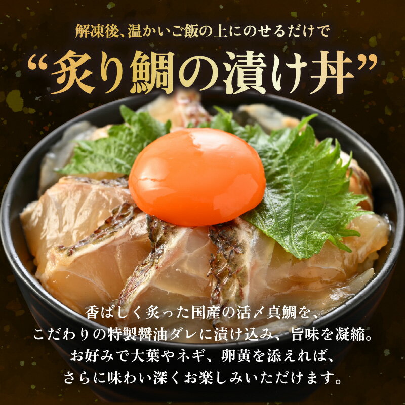 【ふるさと納税】炙り真鯛の漬け鯛めし&あら汁の素セット 【選べる容量:2人前 / 4人前 】切り身 漬け丼 海鮮 海鮮丼 あら汁 セット 真鯛 鯛 魚 魚介 刺身 タイ 鯛めし 鯛茶漬け 簡単 冷凍配送 小分け 敬老の日 プレゼント ギフト