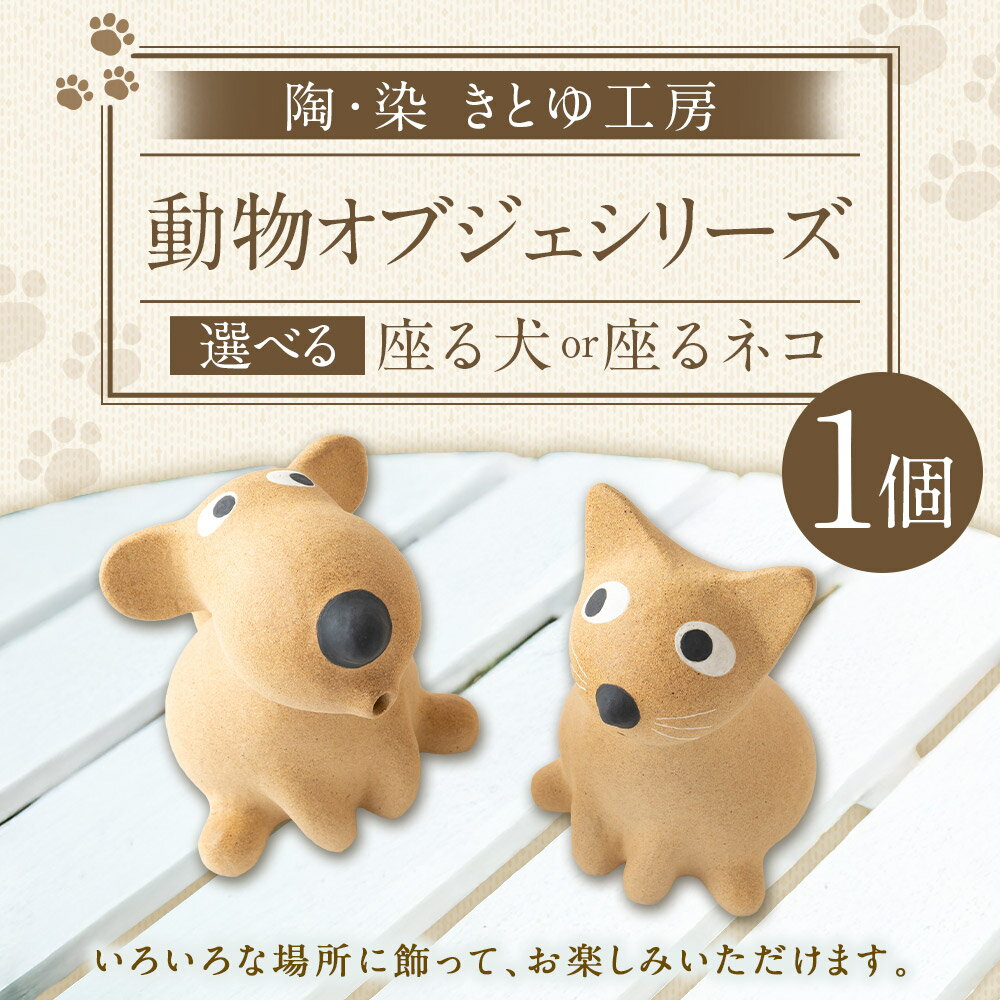 【ふるさと納税】【選べる種類】陶・染 きとゆ工房 動物オブジェシリーズ(座わるネコ)・(座わる犬) オブジェ インテリア オリジナル 手練り コンパクト 癒やし 置物 陶器 陶製 送料無料 福岡県 うきは市