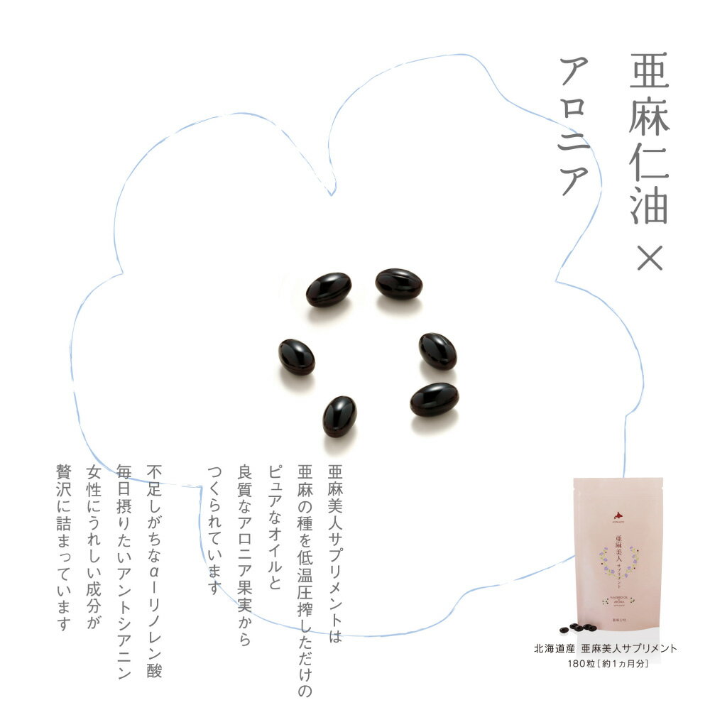 【ふるさと納税】亜麻美人サプリメント180粒 1袋 3袋 6袋 サプリメント 亜麻公社 《お申込順に出荷(通常1~2か月程度)》 北海道 オメガ3系脂肪酸 α-リノレン酸 農薬不使用 低温圧搾 国産 化学溶剤不使用 アロニア果実 ポリフェノール アントシアニン