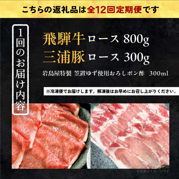 【ふるさと納税】【12回定期便】 牛肉 飛騨牛ロース800g 三浦豚ロース300g 豪華しゃぶしゃぶセットA 各種類1パック 和牛 国産 霜降り 肉 にく 牛肉 国産 和牛 産地直送 贈答用 ギフト ブランド牛 岐阜県産 人気 お取り寄せ /恵那市/岩島屋[AUAJ047]