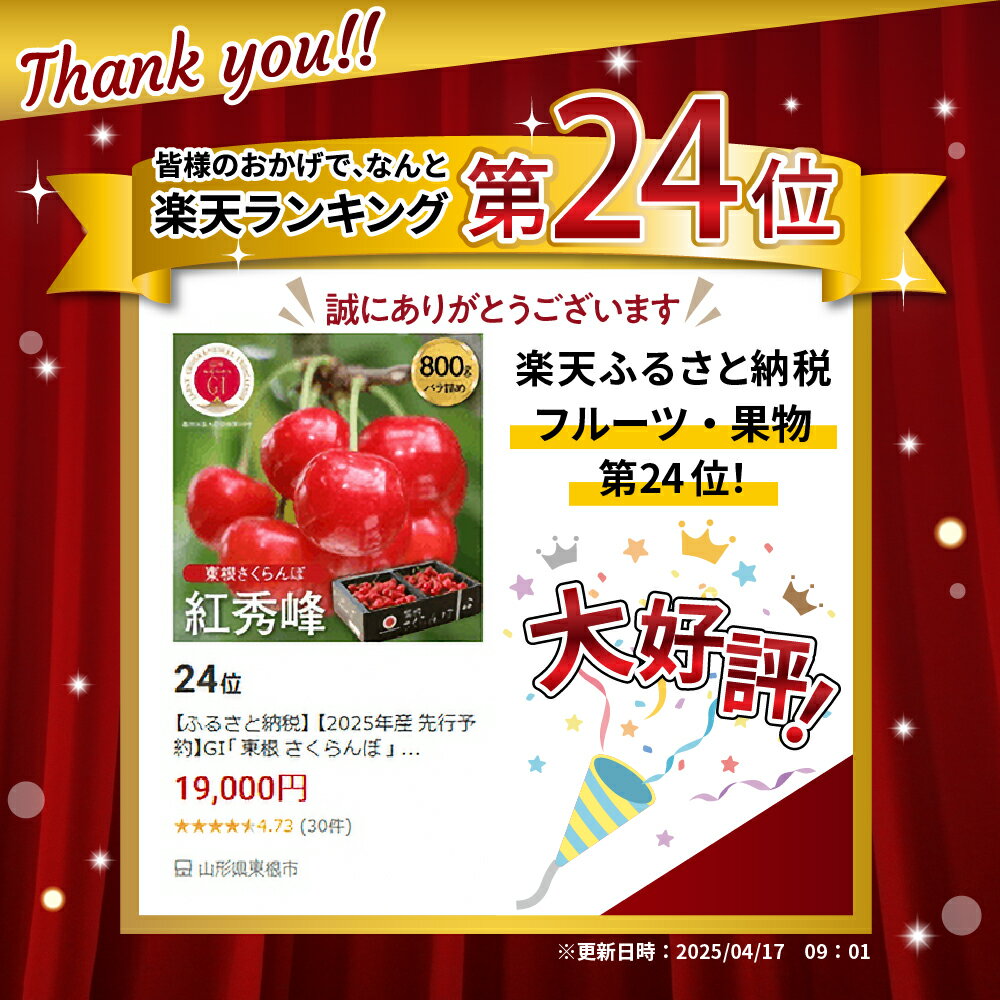 - 【ふるさと納税】 【2026年産 先行予約】「 GI東根 さくらんぼ 」 紅秀峰 800g バラ詰め / フルーツ 果物 くだもの サクランボ Lサイズ 箱入り 化粧箱 期間限定 冷蔵配送 先行予約 お取り寄せ 令和8年産 ご当地 特産 産地直送 山形県 東根市