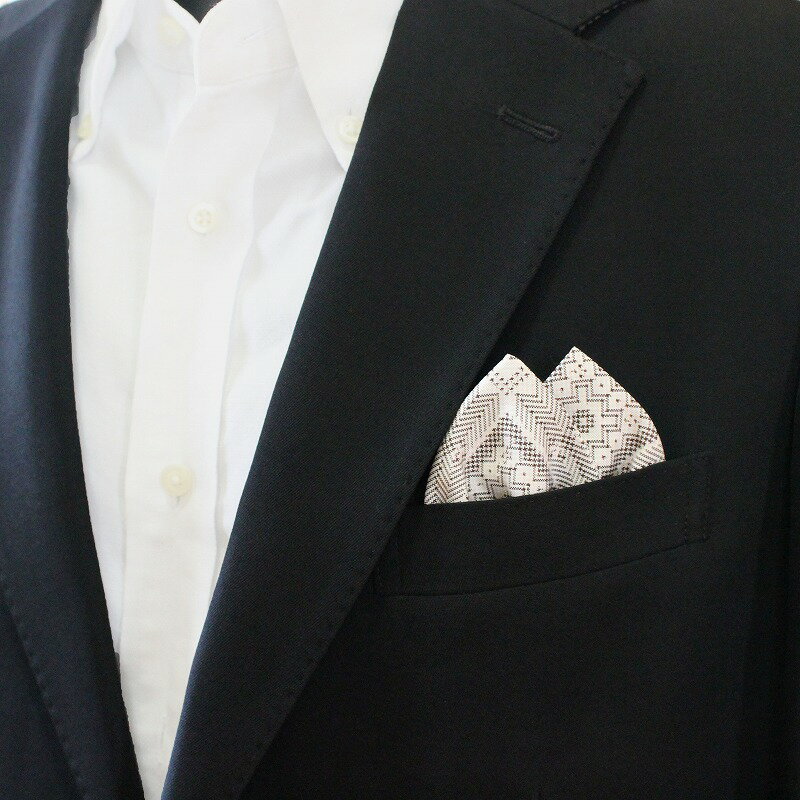 - 【ふるさと納税】 スーツ 小物 高級感 本場奄美大島紬 ポケットチーフ 白龍郷 ツーピークスタイプ 挿すだけ