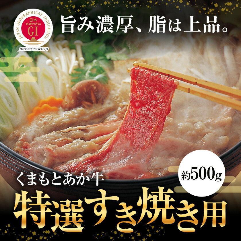 【ふるさと納税】厳選されたGI認証 くまもとあか牛 特選 すき焼き用 約500g GI認証取得牛 牛肉 肉 和牛 あか牛 赤牛 熊本 すき焼き すきやき 薄切り お肉 スライス済み 冷凍 国産 九州産 熊本県産 送料無料《90日以内に出荷予定(土日祝除く)》