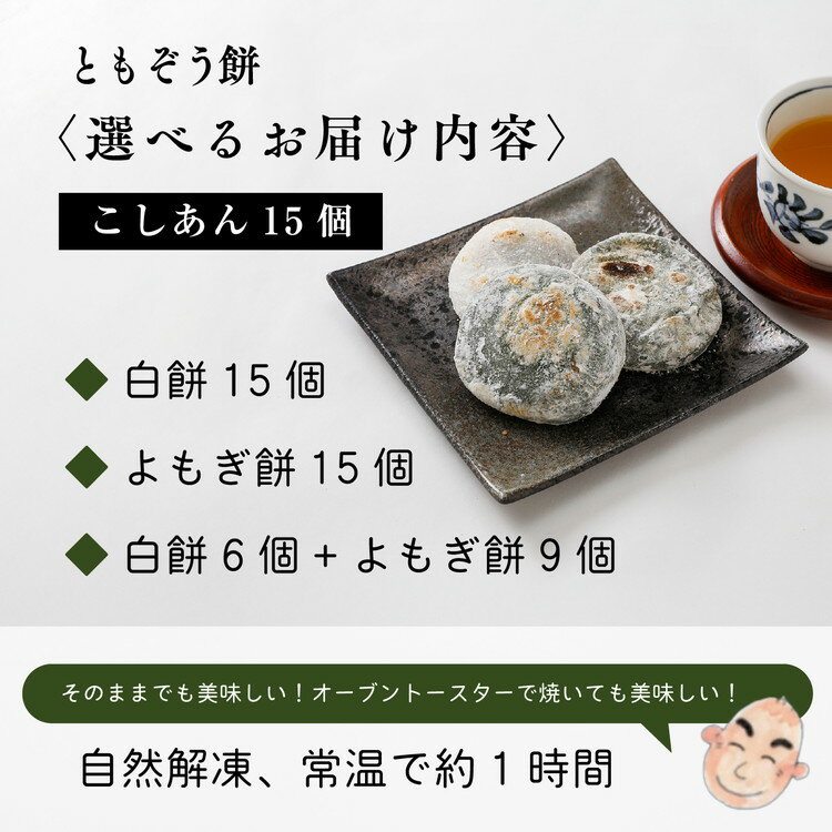 【ふるさと納税】ともぞう餅【こしあん・つぶあん・塩あん15個】5個入3パック 白餅 よもぎ餅 選べるセット|愛媛県 久万高原町 手作り 餅 もち こしあん よもぎ スイーツ 和菓子 正月 雑煮 ぜんざい きな粉餅 昔ながらの味