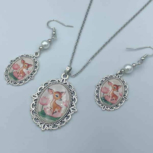 - 【ふるさと納税】子鹿のネックレスとピアスのセット ジュエリー春日 奈良市 なら