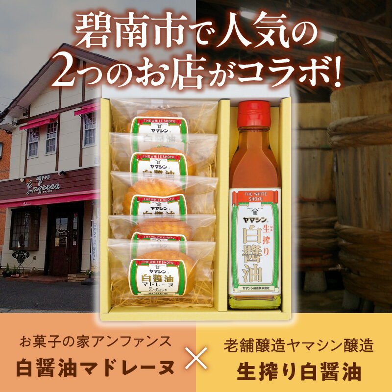 【ふるさと納税】碧南 銘産 セット 伝統 木桶仕込み 醸造 生搾り 白醤油 洋菓子 白醤油マドレーヌ 詰め合わせ 手土産 調味料 スイーツ 焼き菓子 食べ物 ヤマシン醸造 お菓子の家 アンファンス コラボ品 お取り寄せ 愛知県 碧南市 送料無料