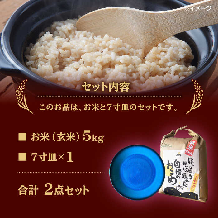 - 【ふるさと納税】【令和7年産】 玄米 コシヒカリ 特別栽培米 (5kg)+ 【美濃焼】 青輝貫入 7寸皿 多治見市 / 山松加藤松治郎商店 [TEU054]