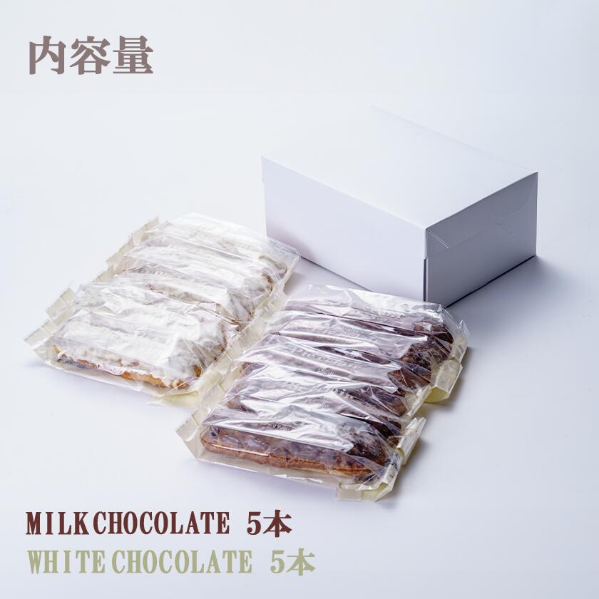 【ふるさと納税】ガトープーリアのエクレアラスク 10個セット(ミルクチョコ5個 ホワイトチョコ5個) | エクレア ラスク チョコレート スイーツ おやつ デザート ギフト 贈答 焼き菓子 洋菓子 人気 テレビ TV 行列 10000 茨城県 つくば市