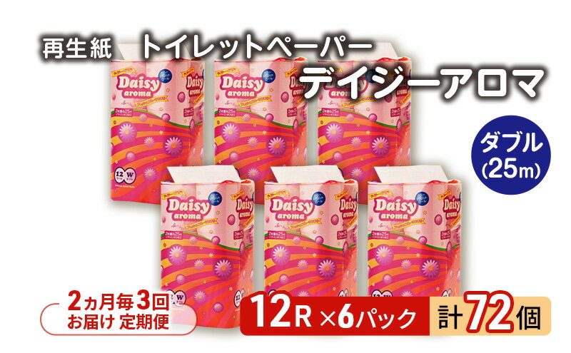 - 【ふるさと納税】【2ヵ月毎 計3回お届け 定期便】トイレットペーパー ディジーアロマ 12R ダブル (25m×2枚)×6パック 72個 ×3回 日用品 消耗品 114mm 柔らかい 香り付き 芯 大容量 トイレット トイレ ふるさと 納税