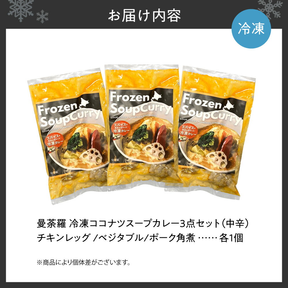 【ふるさと納税】 スープカレー ココナツ 冷凍 各300g以上 3点 セット カレー 中辛 チキンレッグ ベジタブル ポーク角煮 曼荼羅 ストック ソウルフード 真空 手軽 お取り寄せ グルメ 時短 レシピ 北海道 札幌市