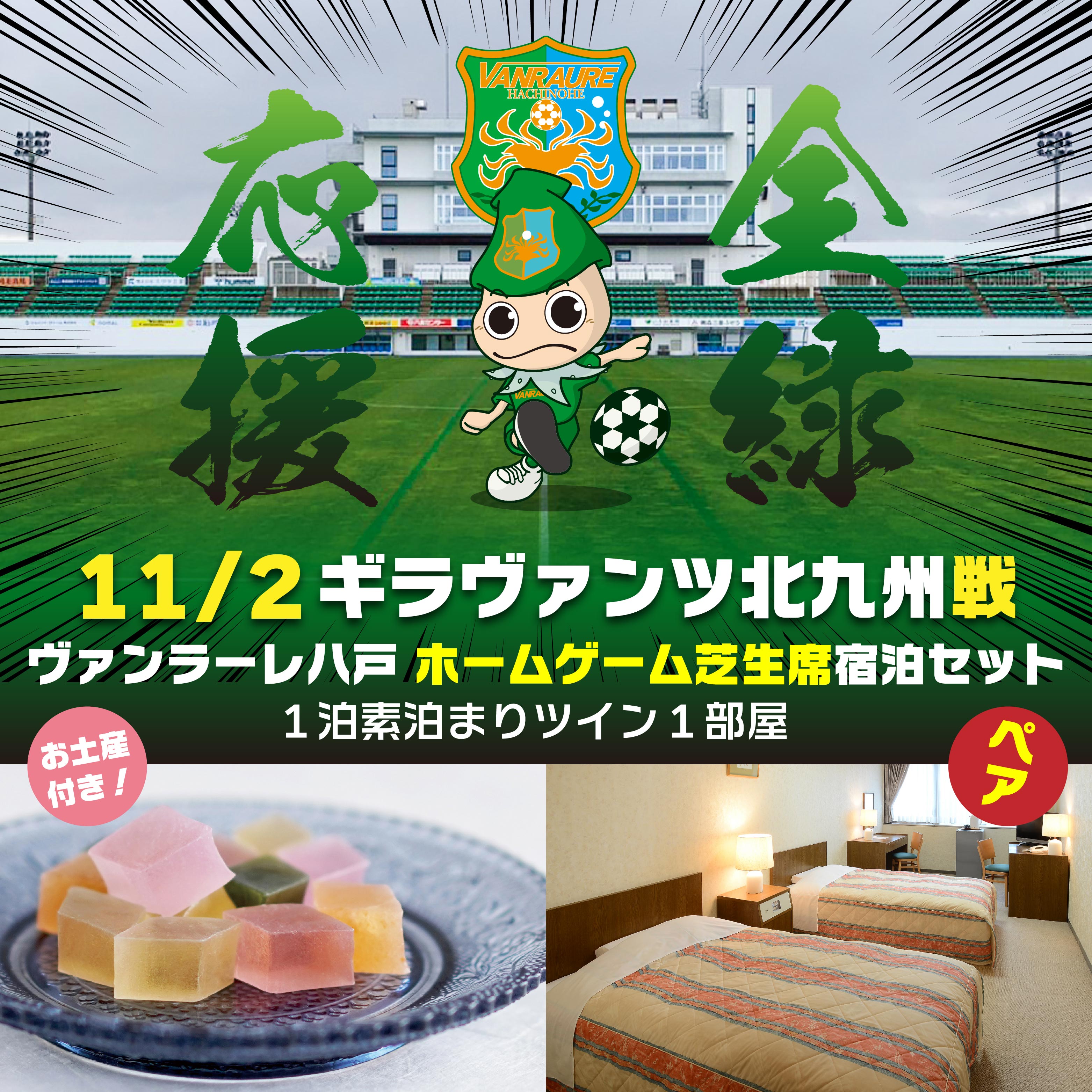 - 【ふるさと納税】【セット】ヴァンラーレ八戸 ホームゲーム 芝生席 ペア(1泊素泊まり宿泊セット×ツイン1部屋)お土産付き 11月2日(日)ヴァンラーレ八戸VSギラヴァンツ北九州戦