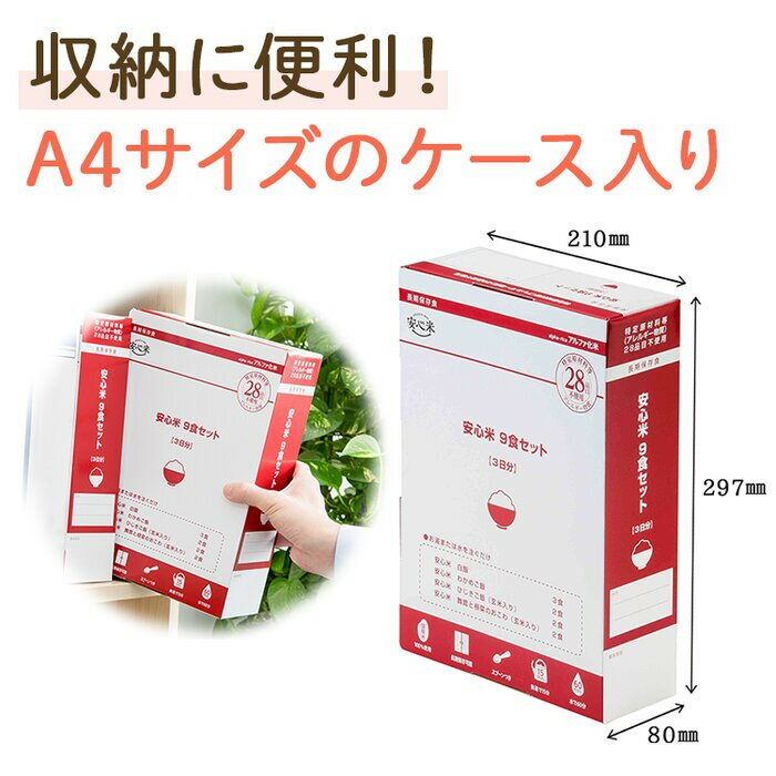 【ふるさと納税】非常食3日家族4人分【安心米9食セット】防災 備蓄 長期/アルファ化米/食物アレルギー対応 | 非常食 安心米 アルファ米 防災グッズ 備蓄食品 長期保存 アレルギー対応 アルファ化米 保存食セット 白米 ごはん 常温保存 食品 ギフト 島根県 出雲市