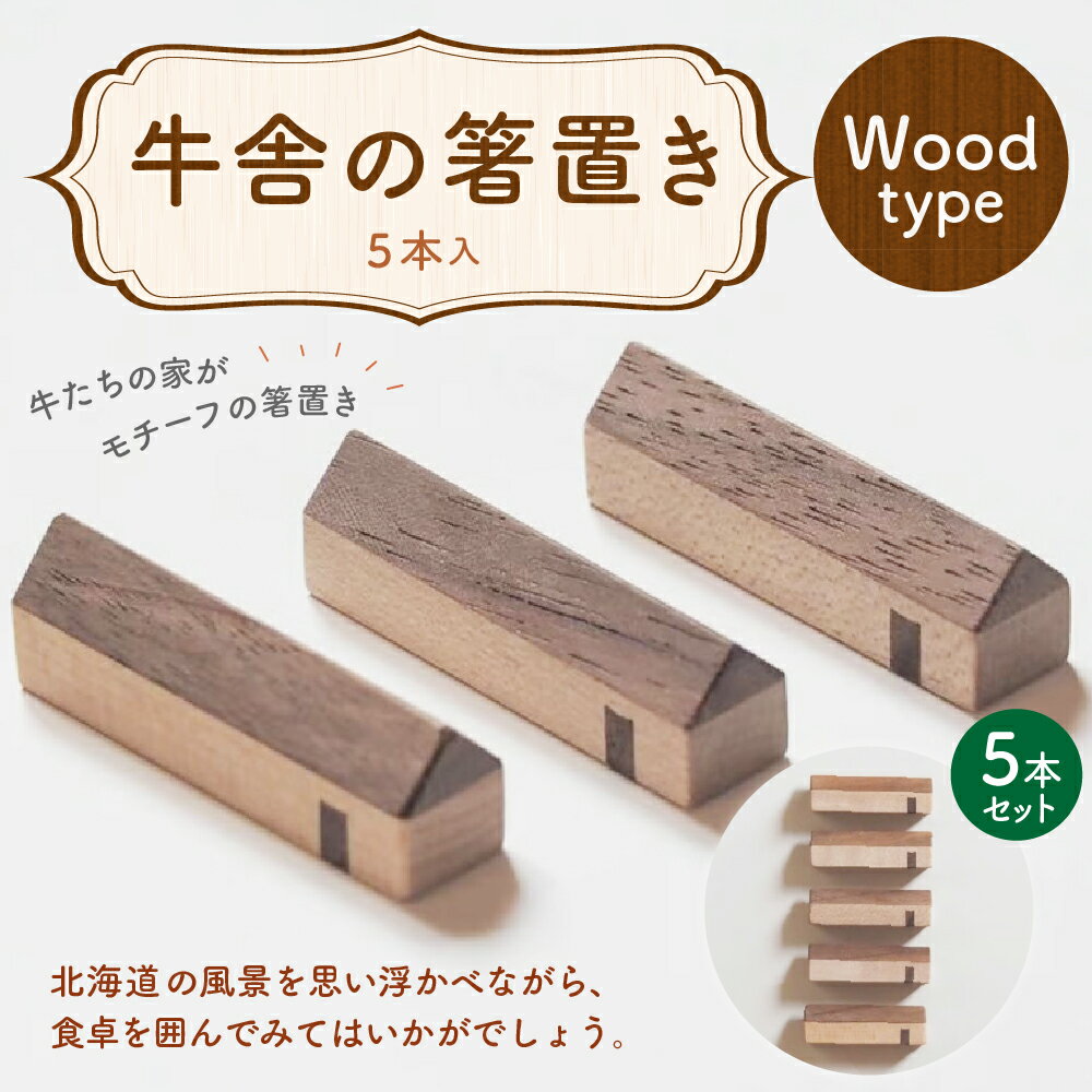 【ふるさと納税】牛舎の箸置き 5本入 木製 メープル ウォールナット セット 箸休め はし置き キッチン雑貨 北海道 北広島市加工 送料無料