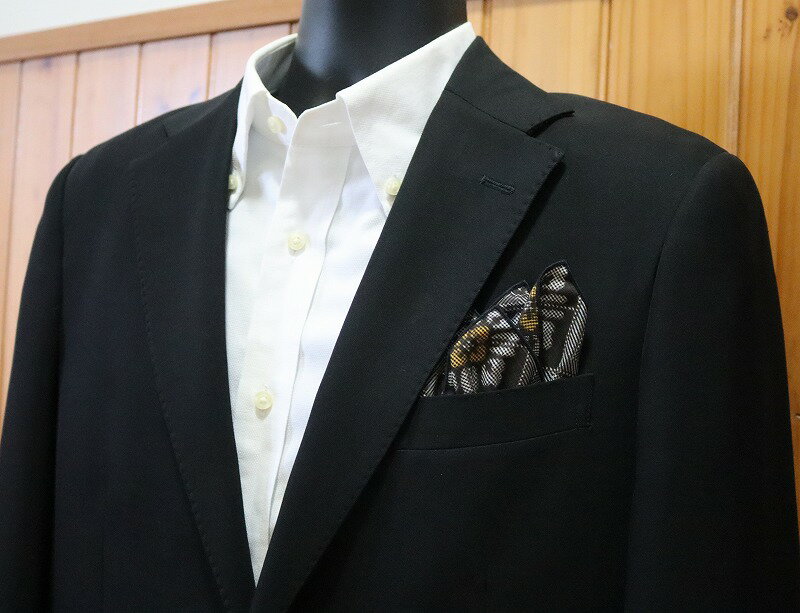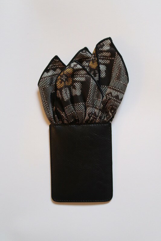 - 【ふるさと納税】 スーツ 小物 高級感 ギフト 本場奄美大島紬 ポケットチーフ 龍郷柄 黄 クラッシュタイプ かがり糸 ブラック 挿すだけ