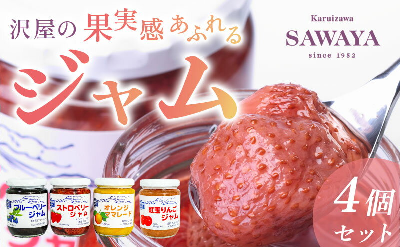 【ふるさと納税】沢屋の果実感あふれるジャム4本セット ストロベリー ブルーベリー オレンジ ママレード 紅玉りんご 沢屋 ジャム 8種 果物 フルーツ 旬 季節毎 新鮮 低糖度 甘さ控えめ 果実感 長野県 軽井沢町