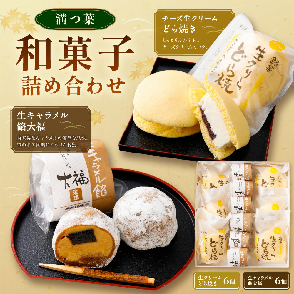 - 【ふるさと納税】チーズ 生クリームどら焼き(6個)と生キャラメル餡大福(6個)詰め合わせ | 和菓子処 満つ葉 お菓子 和菓子 生どら焼き 大福 セット チーズ 生キャラメル キャラメル コーヒー スイーツ 土産 ギフト 岐阜県 美濃加茂市 送料無料