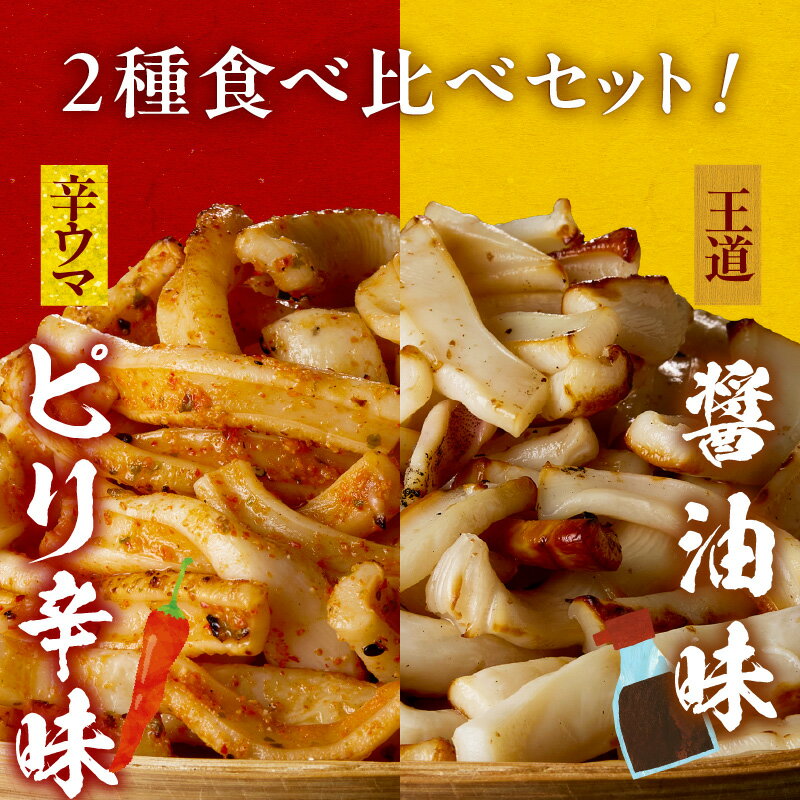 【ふるさと納税】皮無し 網焼き いか 2種 食べ比べ セット 選べる 内容量 1kg 2kg 醤油味 ピリ辛味 各500g 北海道直送 道水 松いか 短冊状 カット 食べやすい 肉厚 香ばしい お酒 おつまみ 肴 晩酌 家飲み 宅飲み お取り寄せグルメ お取り寄せ 北海道 函館市 送料無料