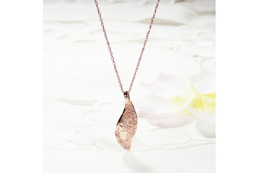 - 【ふるさと納税】 桜彫刻 ネックレス K18PG ピンクゴールド リーフモチーフ 手彫り 和柄 花模様【f118-k18pg】 [オーダーメイドジュエリーメイ 山梨県 韮崎市 20743782] アクセサリー アクセ ジュエリー レディース