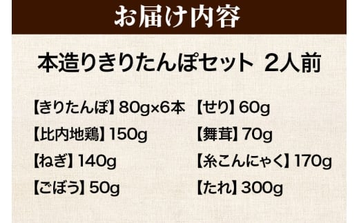 - 《12月発送》きりたんぽ セット 本造り 2人前 (きりたんぽ 6本 比内地鶏 150g 野菜付き) 秋田県産 鍋