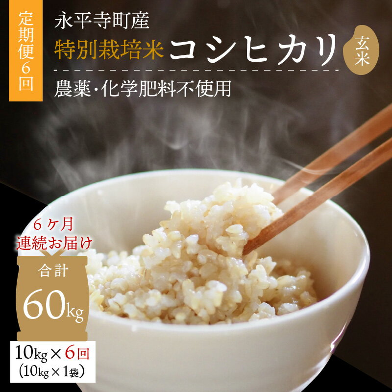 - 【ふるさと納税】【先行予約】【6ヶ月定期便】【玄米】 令和7年度産 永平寺町産 農薬不使用・化学肥料不使用 特別栽培米 コシヒカリ 10kg×6ヶ月(計60kg)【10月より順次発送 頒布会 無農薬 ご飯 ごはん こめ 定期便 10キロ 10kg 米 米 お米 コメ 送料無料 こしひかり 福井