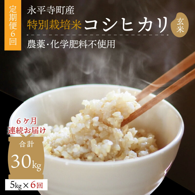 - 【ふるさと納税】【先行予約】【6ヶ月定期便】【玄米】 令和7年度産 永平寺町産 農薬不使用・化学肥料不使用 特別栽培米 コシヒカリ 5kg×6ヶ月(計30kg)10月より順次発送 頒布会 無農薬 ご飯 ごはん こめ 定期便 5キロ 5kg 米 米 お米 コメ 送料無料 こしひかり 福井