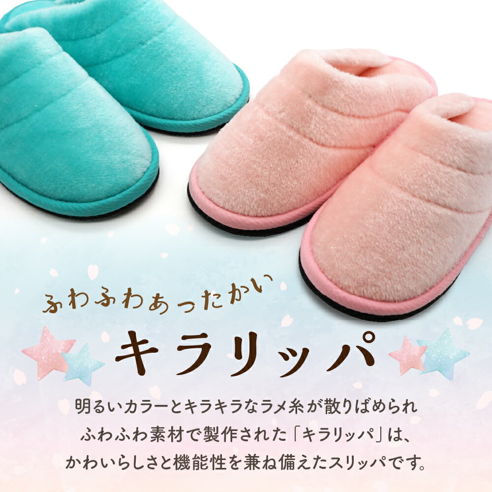 - 【ふるさと納税】キラリッパ 1足(Sサイズ / Mサイズ / Lサイズ、ピンク / ブルーグリーン) 選べるサイズ 選べるカラー ボア素材 冬 定番 快適 保温 キラキラ ラメ ふわふわ かわいい おしゃれ 贈り物 ギフト 職人 手作り【河内スリッパ】